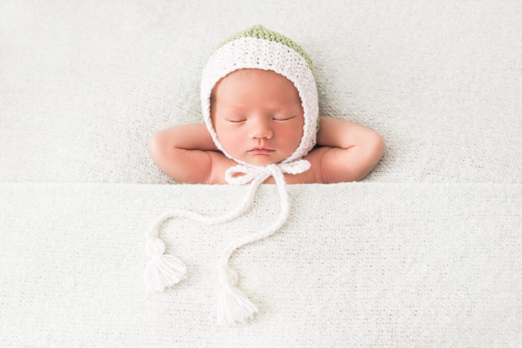 mit Requisiten für Neugeborene, wie Körbe, Wraps,